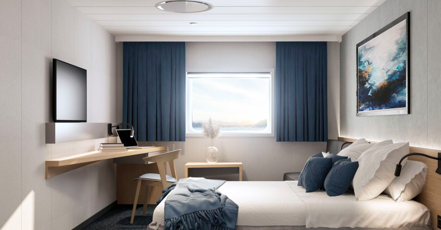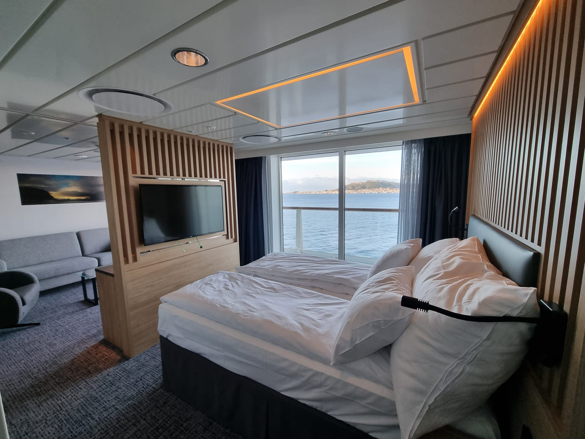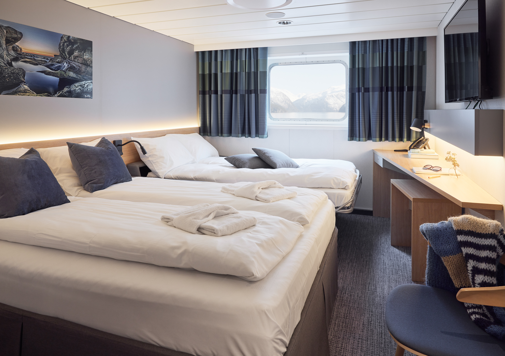 - Voyage from Kirkenes to Bergen, 5 nights in a twin/double Seaview Superior Cabin with toilet & shower