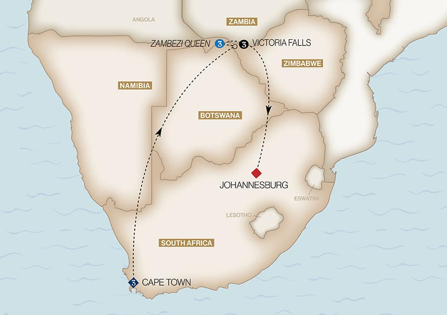 along your journey through Southern Africa. Start your adventure in Cape Town, where you will discover treasured