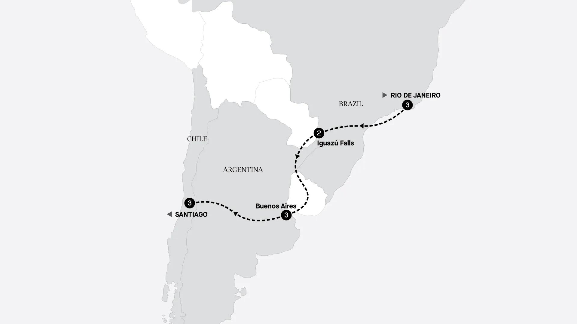 Discover the highlights of Chile, Argentina, and Brazil. Experience Santiago’s vibrancy, enjoy a tango show in Buenos Aires, and visit the stunning Iguazú Falls with a stay at Gran Meliá Iguazú. End your journey in Rio de Janeiro with time to explore at your own pace.