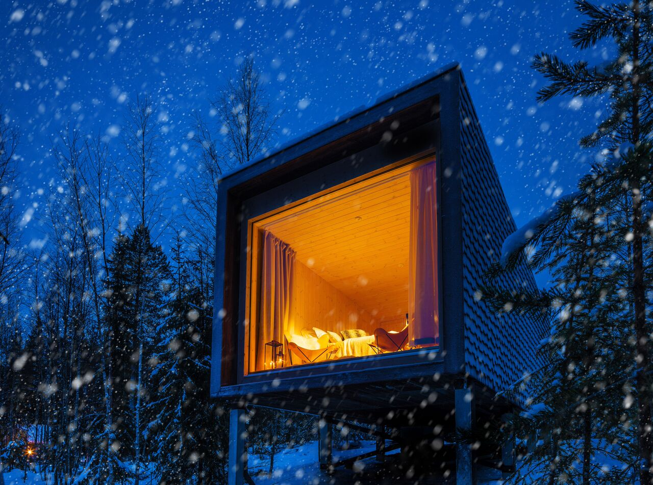 The Arctic TreeHouse Hotel is situated in the forest within the Santa Park at Rovaniemi. With spectacular views over the treetops, the TreeHouse suites offer an exclusive combination of local tradition, Lappish heritage and modern Scandinavian design.