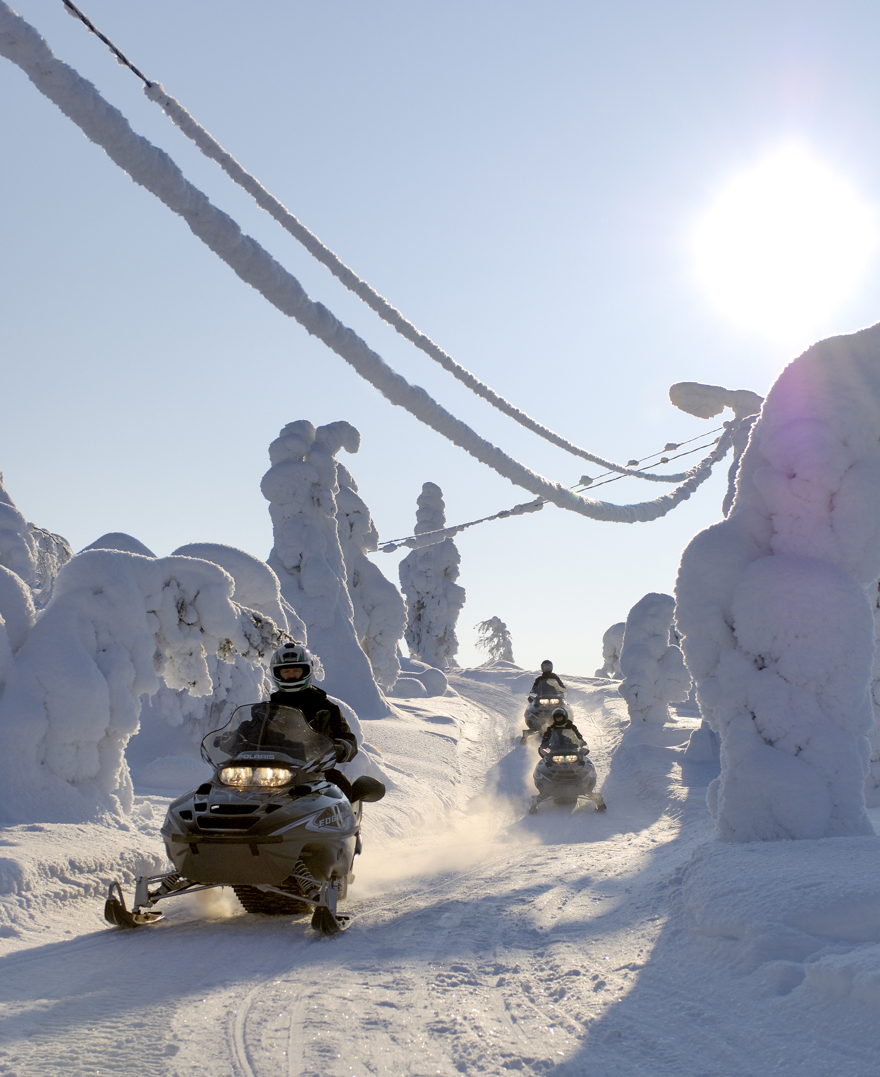 - Snowmobile riding through the forest