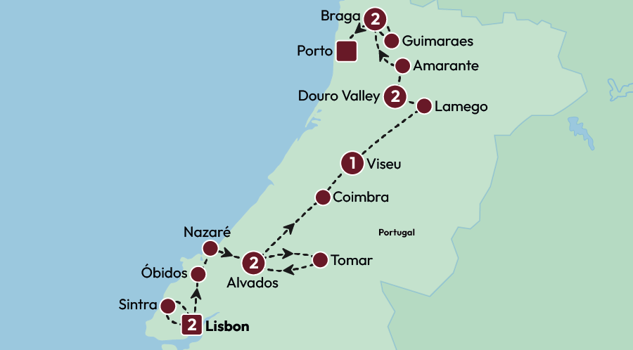 Uncover Portugal’s true essence as we journey from vibrant Lisbon to the cinematic Douro Valley and beyond – taking in world-famous pilgrimage sites, sumptuous local cuisine and staggering landscapes as we go. Weave your own travel tale as you discover cosy hole-in-the-wall eateries along cobblestone alleys and seek out the perfect pastel de nata in medieval cities, sip on distinguished wines among lush olive groves and feel the power of the Atlantic Ocean fill up your lungs. It’s all here, waiting to become a part of your story.