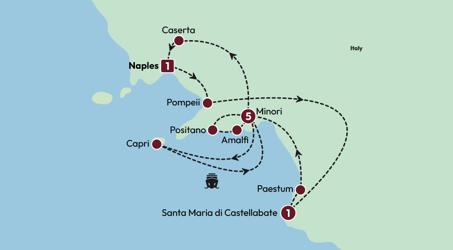 Welcome to Italy, where pastel-hued cliffside villages, glittering turquoise oceans and gilded palaces collide. Where every winding path laden with history leads to a new memory waiting to be unlocked. Sample soft mozzarella and crunchy peperoncini that tantalise your tastebuds, hear tales of noble kings and queens from a local expert, and soak up fragrant gardens filled with every colour of the rainbow. Embrace this journey as your own and discover something new every step of the way.
