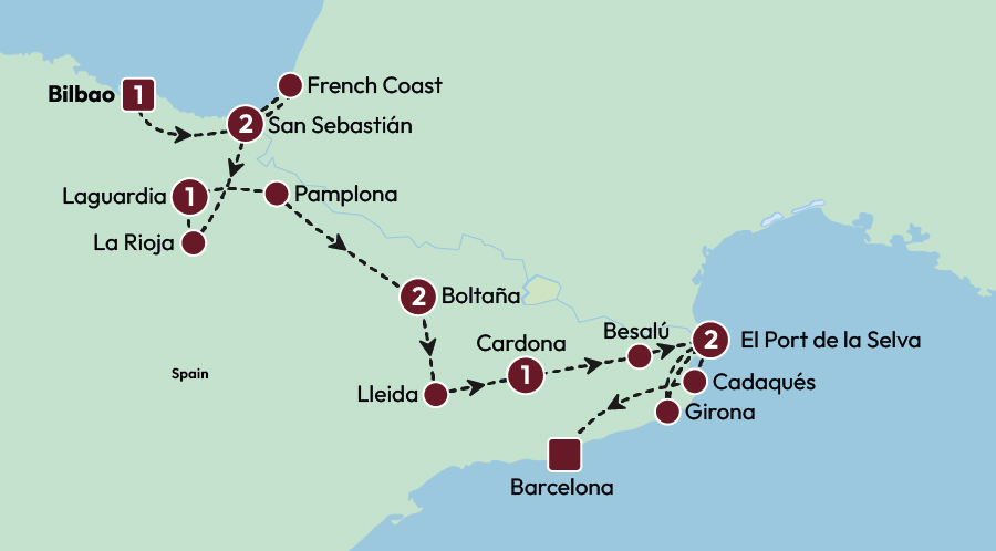 Our last drive will take us along the sun-kissed Costa Brava to Barcelona – where our tour will come to an end.