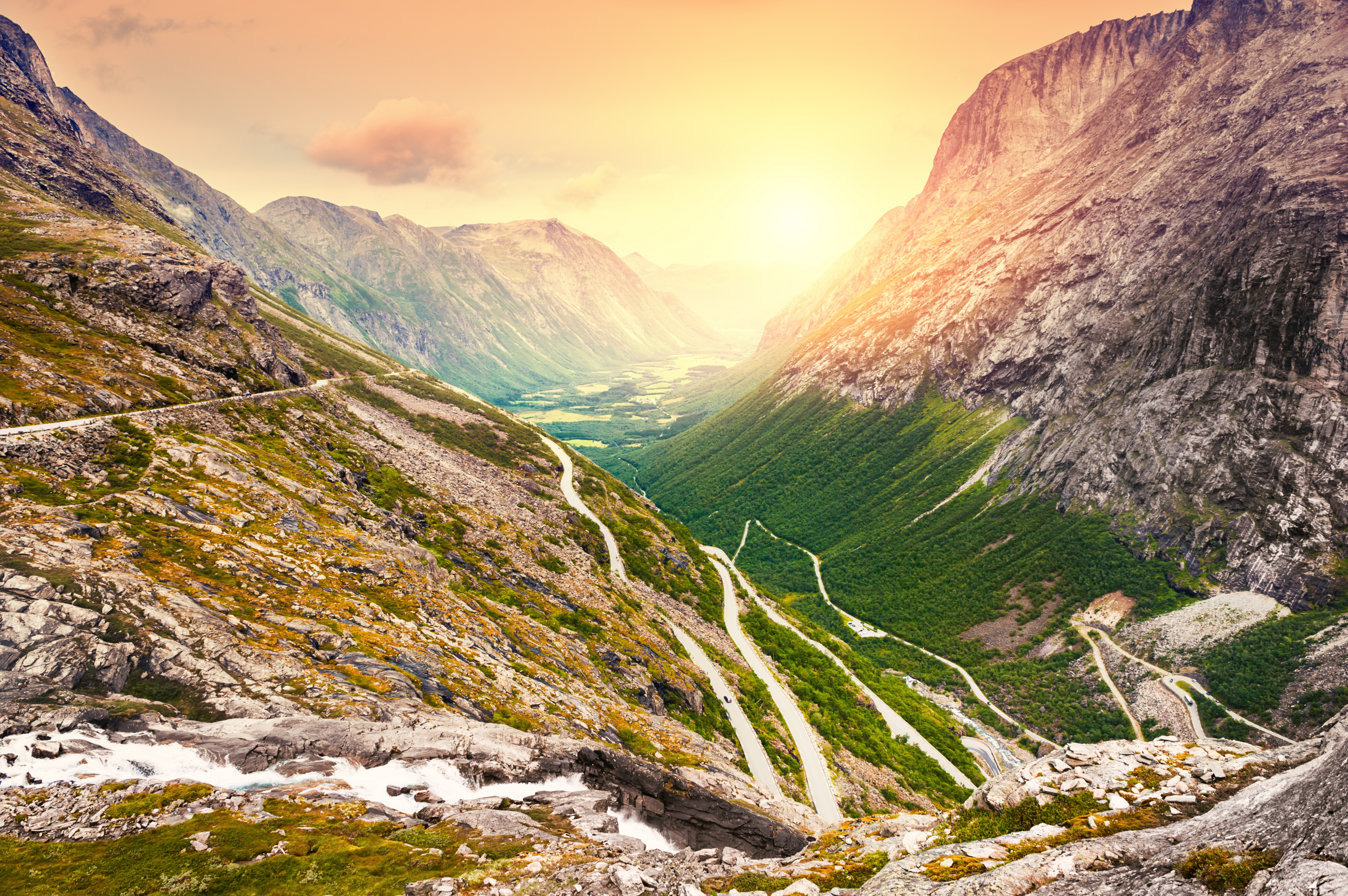 The perfect mix of countryside, mountains and fjords on some of Norway’s most spectacular scenic routes. The journey Bergen to Trondheim will take you along fjords, over mountains and beside stunning waterfalls. This 6-day drive gives you the chance to drive the winding roads of the Troll Mountain (Trollstigen) and the storm swept curves of the Atlantic Road. A quick stop in the Geiranger chocolate shop is also recommended.