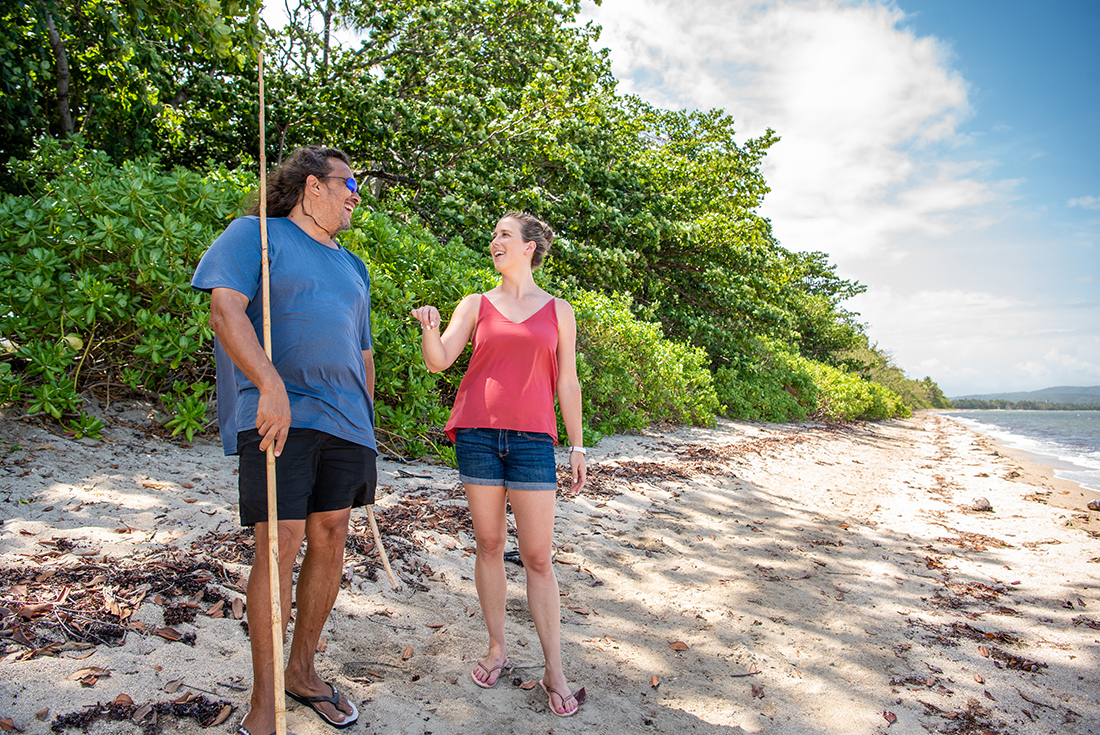 After breakfast, travel to Mossman Gorge. When you arrive, set out on a Ngadiku Dreaming walking tour led by a local Aboriginal guide. Ngadiku (Nar-di-gul) means stories and legends from a long time ago in the local Kuku Yalanji language. As you walk, listen to these stories, visit culturally significant sites, traditional bark shelters and rainforest streams and learn about traditional plant use, bush food sources and the connection to this tropical environment. Watch a traditional smoking ceremony to cleanse and ward off bad spirits, then sit down to a bush tea and damper (a loaf or cake of flour and water that’s baked in wood ashes). After, drive south to Palm Cove to explore the scenic beachside town and maybe grab some lunch. You can end your trip here or carry onto Cairns, where your trip will come to an end at approximately 4 pm.