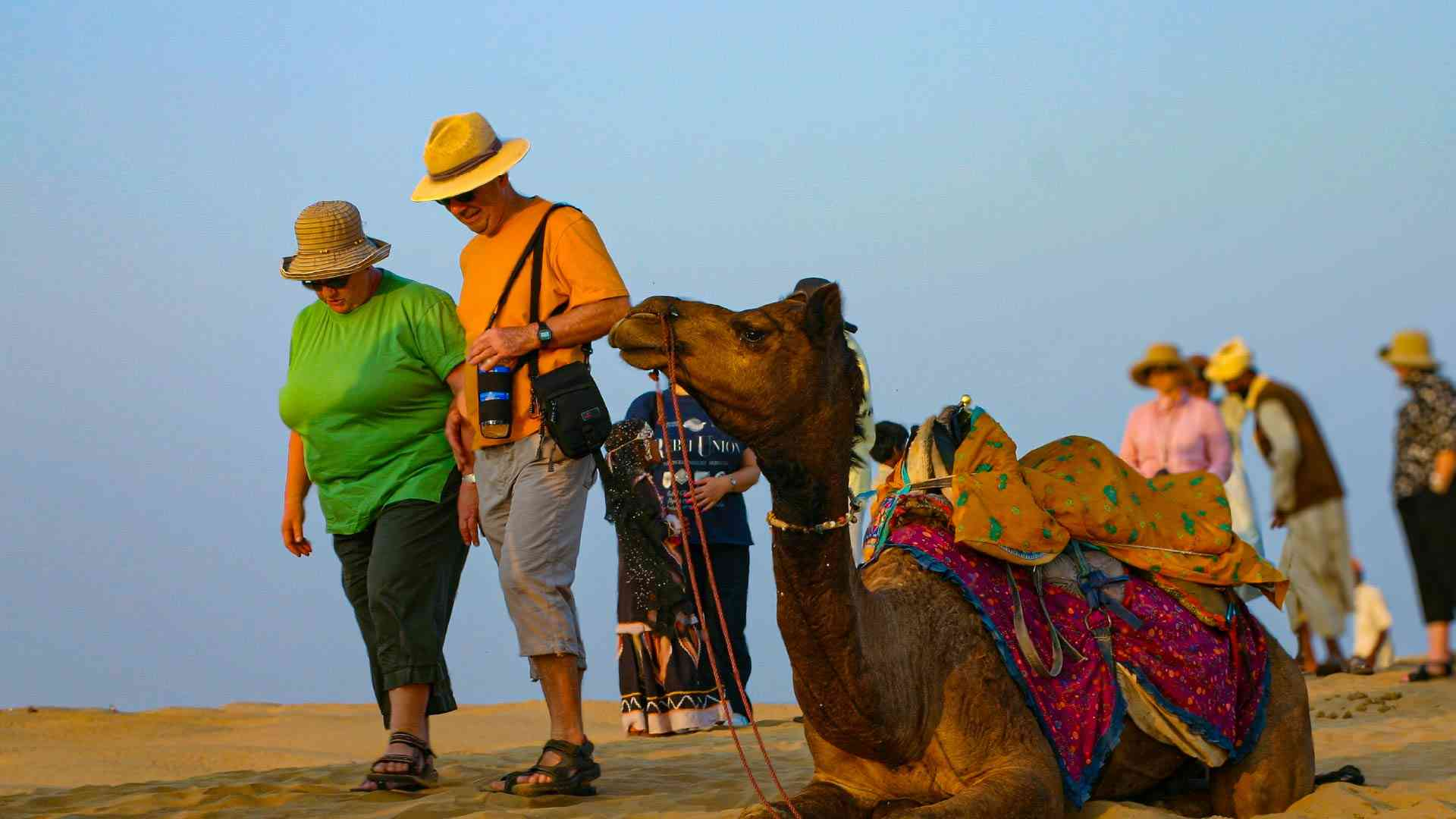 Explore the sandy dunes of the Thar Desert on a camel safari, before enjoying a delicious desert dinner.