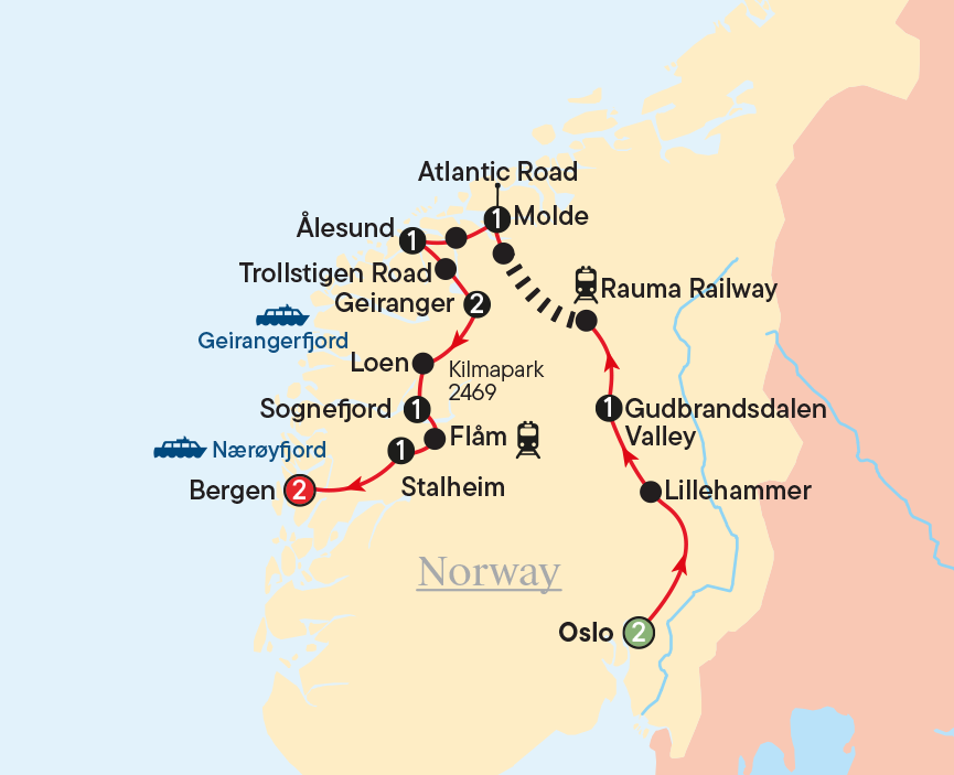 The rest of the day is at leisure for you to explore at your own pace. During your free time, why not check out one of Oslo’s interesting museums? Perhaps a visit to the Norsk Folkemuseum or Fram Museum will be on your agenda today.
