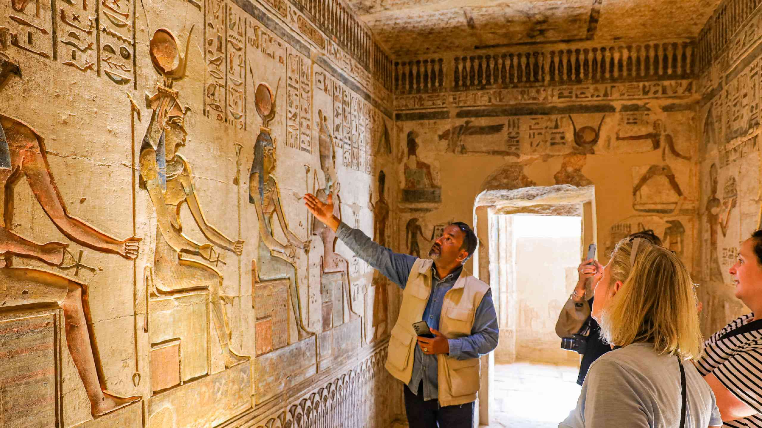 Descend underground into Tutankhamun’s Tomb, adorned with intricate corridors and well-preserved hieroglyphic paintings.