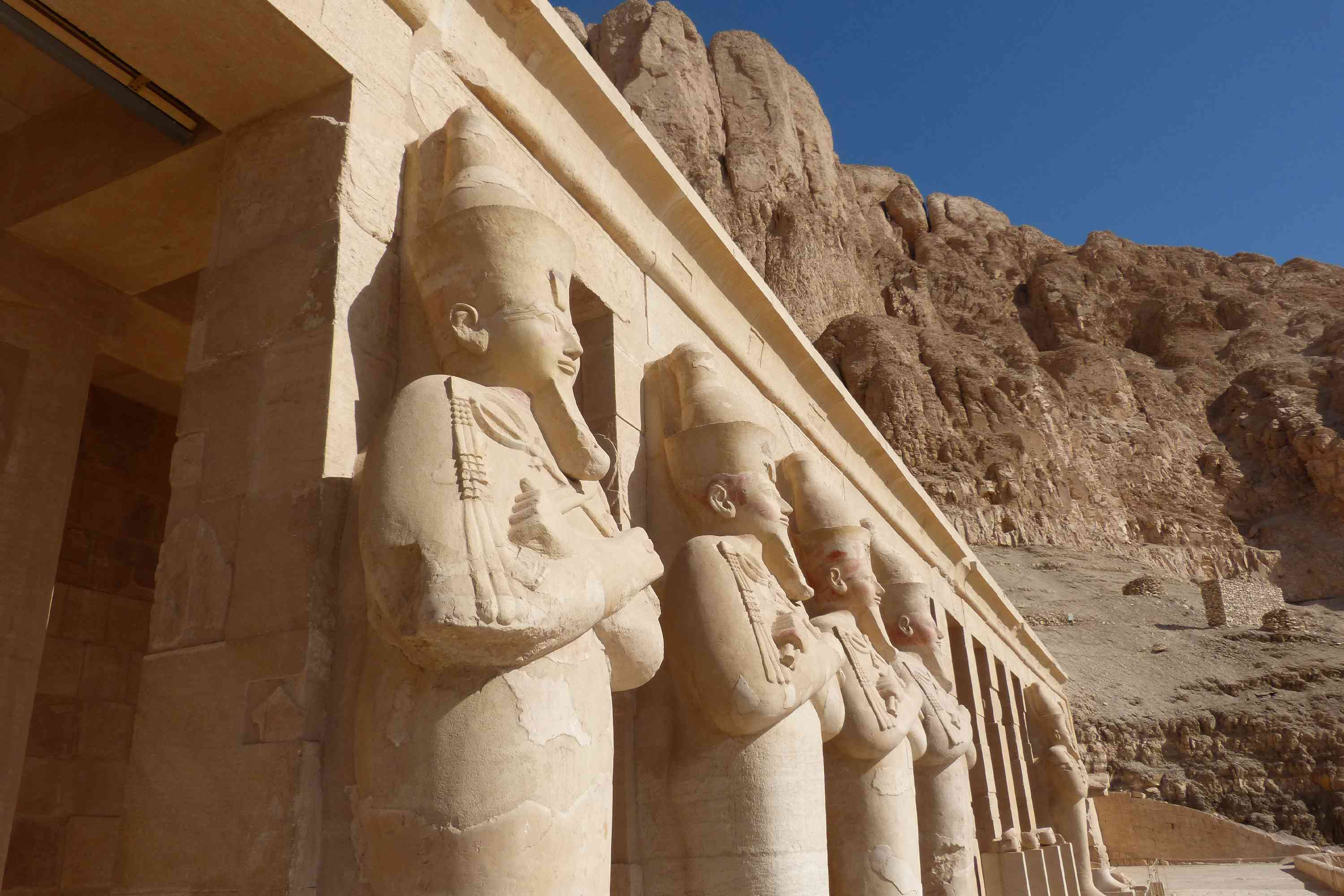 Next, we explore the stunning Temple of Hatshepsut. Queen Hatshepsut was one of only a few women to be given the title of pharaoh. Built into the cliffs of the Theban Mountains, this grand mortuary temple features terraces, colonnades and ramps that blend seamlessly into the surrounding landscape.