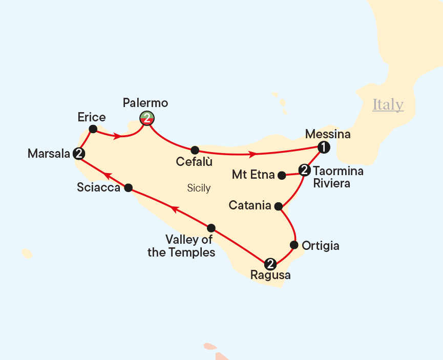 Our tour concludes after breakfast this morning. We hope you leave with fabulous memories as we bid ‘addiu’ to our new friends and to the sun-drenched wonders of Sicily!