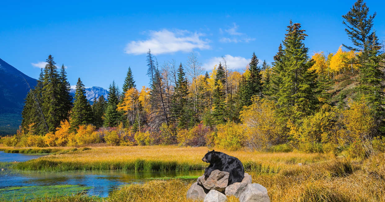 We'll waste no time this morning, taking a quick drive through the centre of Calgary as we head west into the Rockies, their peaks rearing up in the background like a distant tidal wave. To the west of Calgary lie the stunning landscapes of Kananaskis Country, Alberta's breathtaking mountain playground. Driving out of the city, we'll head along the Trans-Canada Highway (Highway 1) towards the Peter Lougheed Provincial Park. This landscape is home to bears, elk, moose, and mountain lions.