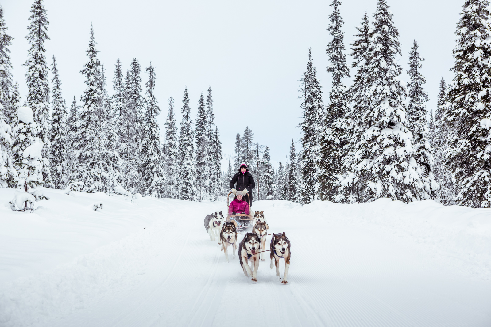 - 5 activities as described (Dogsledding and Farm Visit, Frozen Lakes with Ice Fishing, Nature Safari with snowmobiling, Reindeer Safari and Myths of The North experience