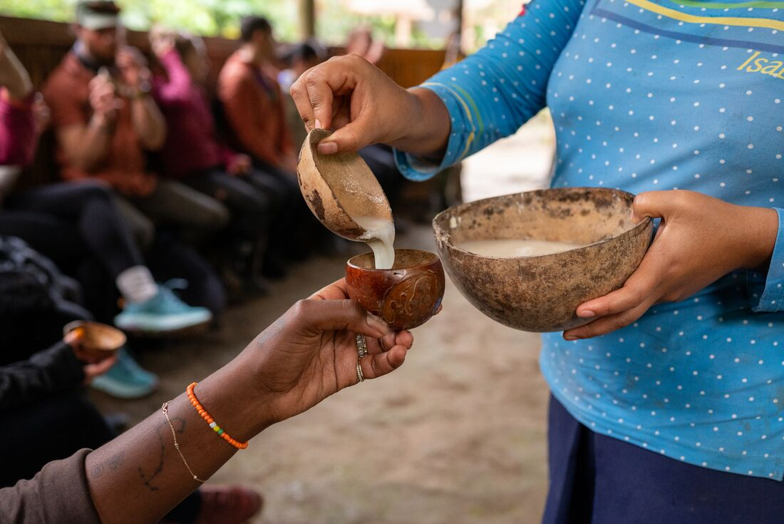 After breakfast this morning, wave goodbye to the country’s capital and switch up the pace as you make your way to the Amazon on a local bus bound for Tena. Your lodge-style accommodation in Tena, on the banks of the Arajuno River, is only accessible by motorised canoe so you can expect a little bit of adventure for the last leg of today’s trip! You'll have a free afternoon to explore the eco-lodge – built with all-natural materials, this lodge belongs to the Selvaviva Foundation that works with the Indigenous community in the area. Tonight, have dinner at the eco-lodge, listening to the singing sounds of jungle insects and the flicker of the fireplace. Then, wander the area under the twinkling night sky on a night walk with your leader guiding the way.
