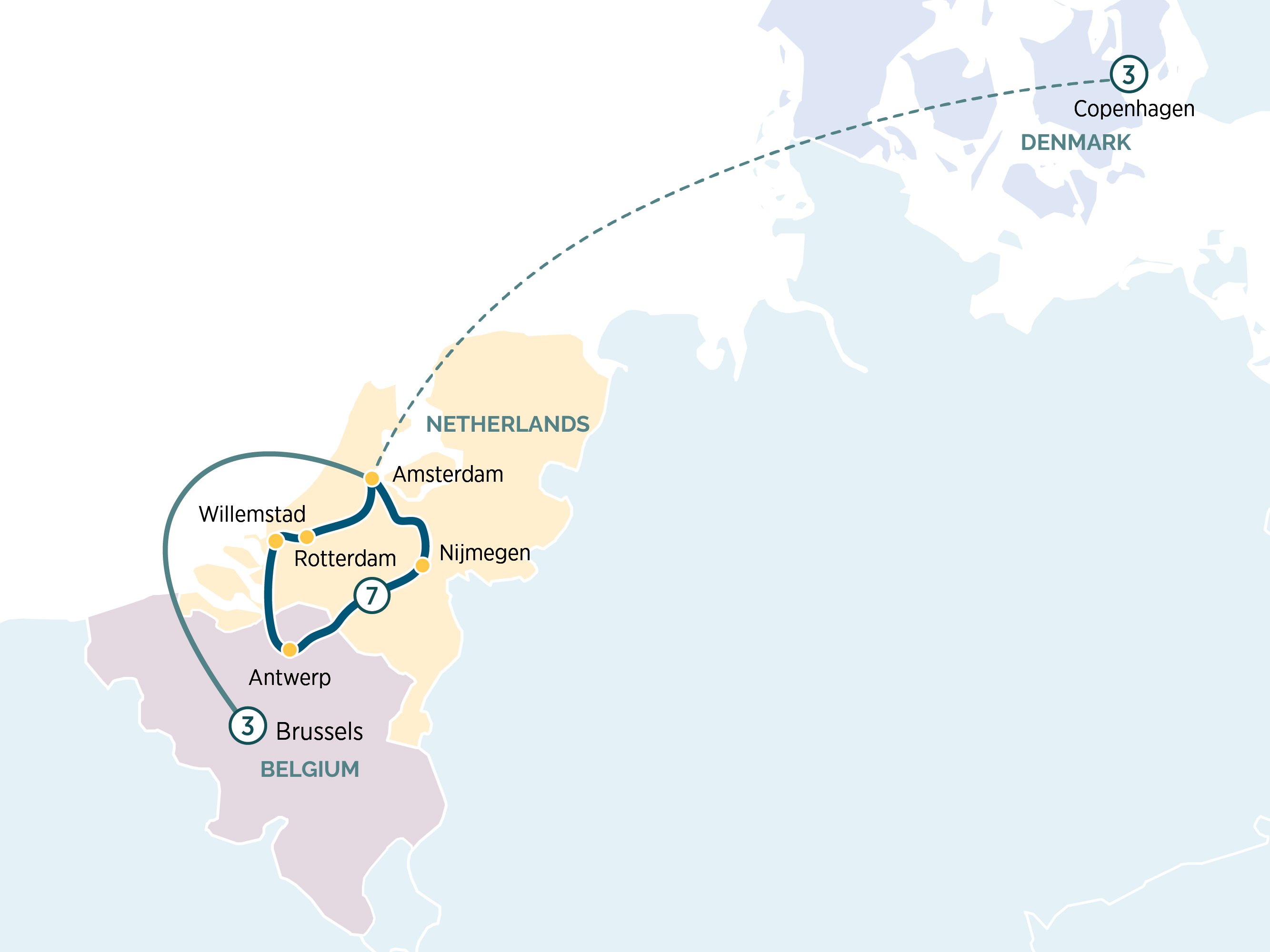 Enjoy a four-day stay in Belgium and its delightful capital, Brussels, before your luxury river cruise. Following your cruise, experience the royal splendour of enchanting Copenhagen on a four-day stay. During your exciting city extensions, discover hidden treasures on guided tours and explore more of these celebrated European cities at leisure.