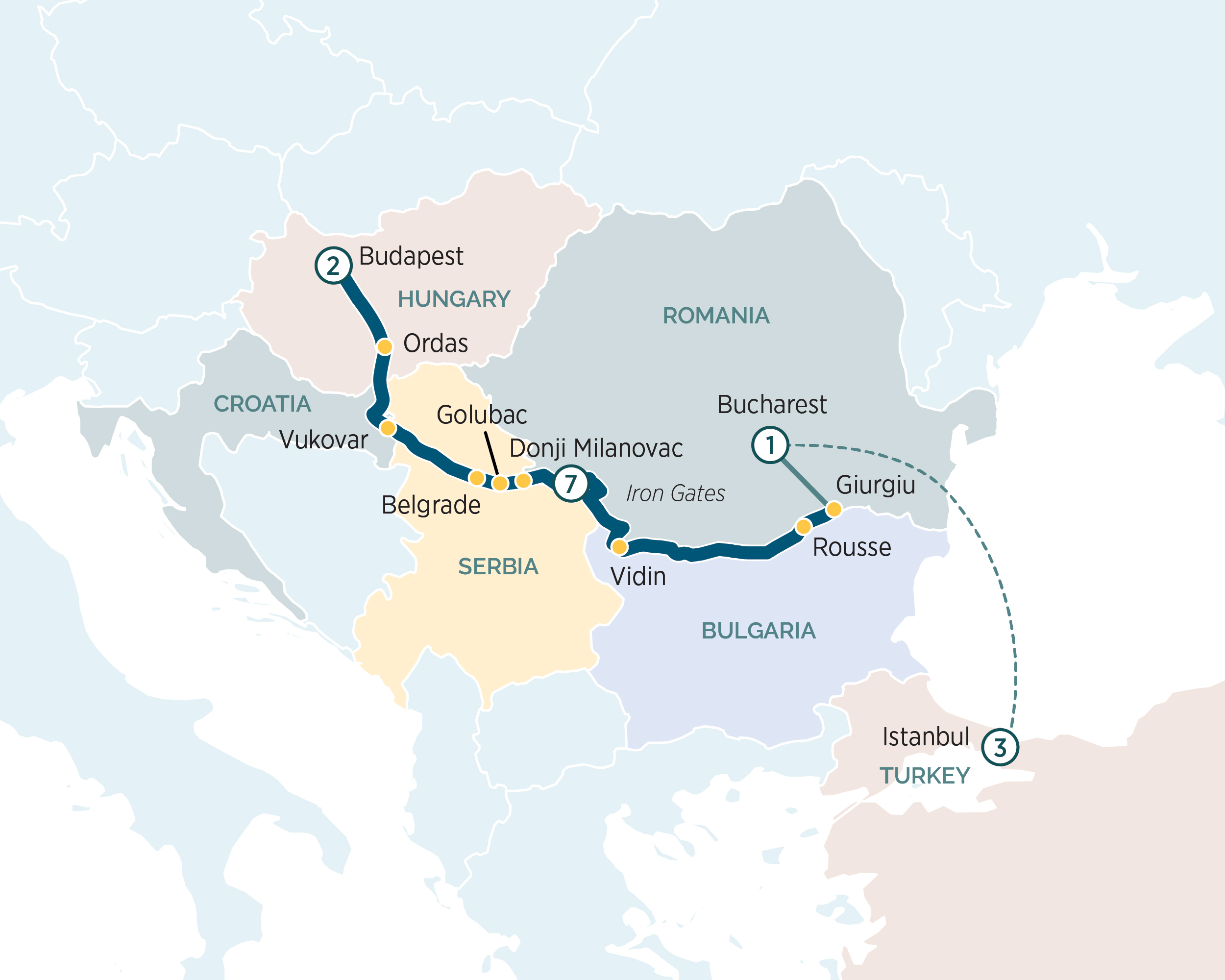 Belgrade, enjoy a guided city tour, before a Serbian folklore show on board. Taste Romanian wine, attend a choir concert in Arbanasi, and journey by road to Bucharest.