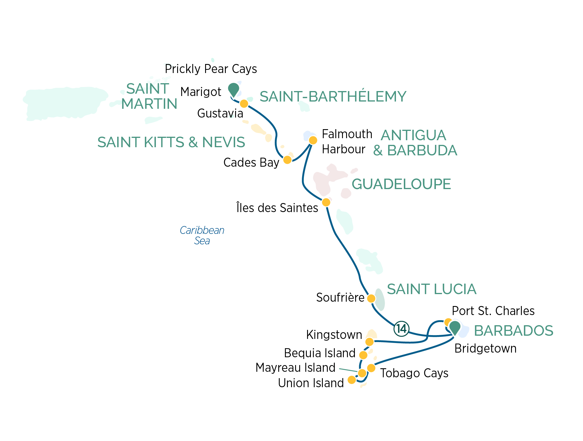 Embark on this 15-day Caribbean cruise starting from Marigot, aboard an Emerald Cruises luxury yacht. Explore the low-lying island of Anguilla, famed for its enticing white-sand beaches and coral reefs. Admire UNESCO World Heritage-listed Nelson’s Dockyard in Falmouth Harbour and discover the hidden gem of Bequia Island. Visit Kingstown, the capital of Saint Vincent and the Grenadines, known for its dining and water sports. This epic voyage navigating the Eastern Caribbean and Grenadines is a memorable experience of island life.