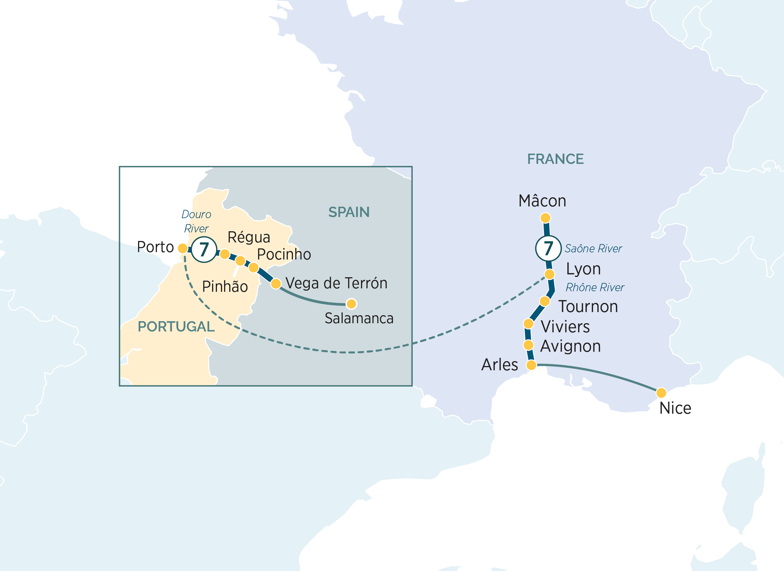 Soak up the timeless beauty, culinary delights and distinct culture of two remarkable European regions, as you cruise Portugal’s Douro River and the Rhône and Saône rivers of Southern France on this combined river cruise journey.