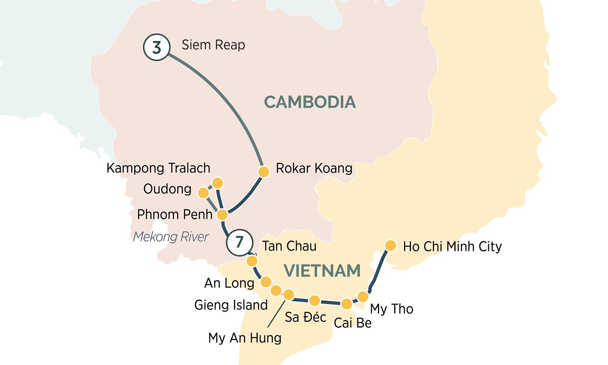 This enthralling journey through Vietnam and Cambodia takes you on a luxury river cruise along the legendary Mekong River through the pastoral Mekong Delta, immerses you in Phnom Penh’s storied history and uncovers the ancient Khmer temples of Siem Reap.