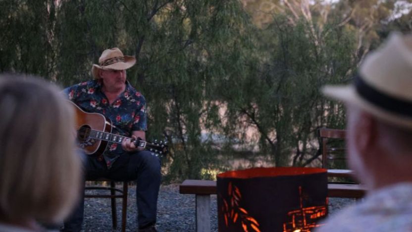 A perfect replica of a vintage paddle steamer, Emmylou is powered by its original 1906 Marshall, Sons and Co steam engine. Its gleaming timber cladding and authentic wheelhouse evoke a bygone era, and guests are welcome to step inside and chat with the skipper. The eight elegant onboard cabins feature fine linens, private en suites, and direct deck access — perfect for pausing to watch serene river scenes drift by. Set off at 4pm this afternoon for Layfield Lane, where you’ll spend your time on board unwinding with a good book or simply soaking in the ever-changing scenery of the Upper Murray River. Upon arrival, enjoy a gourmet Australian barbecue under the stars, followed by a live music performance.