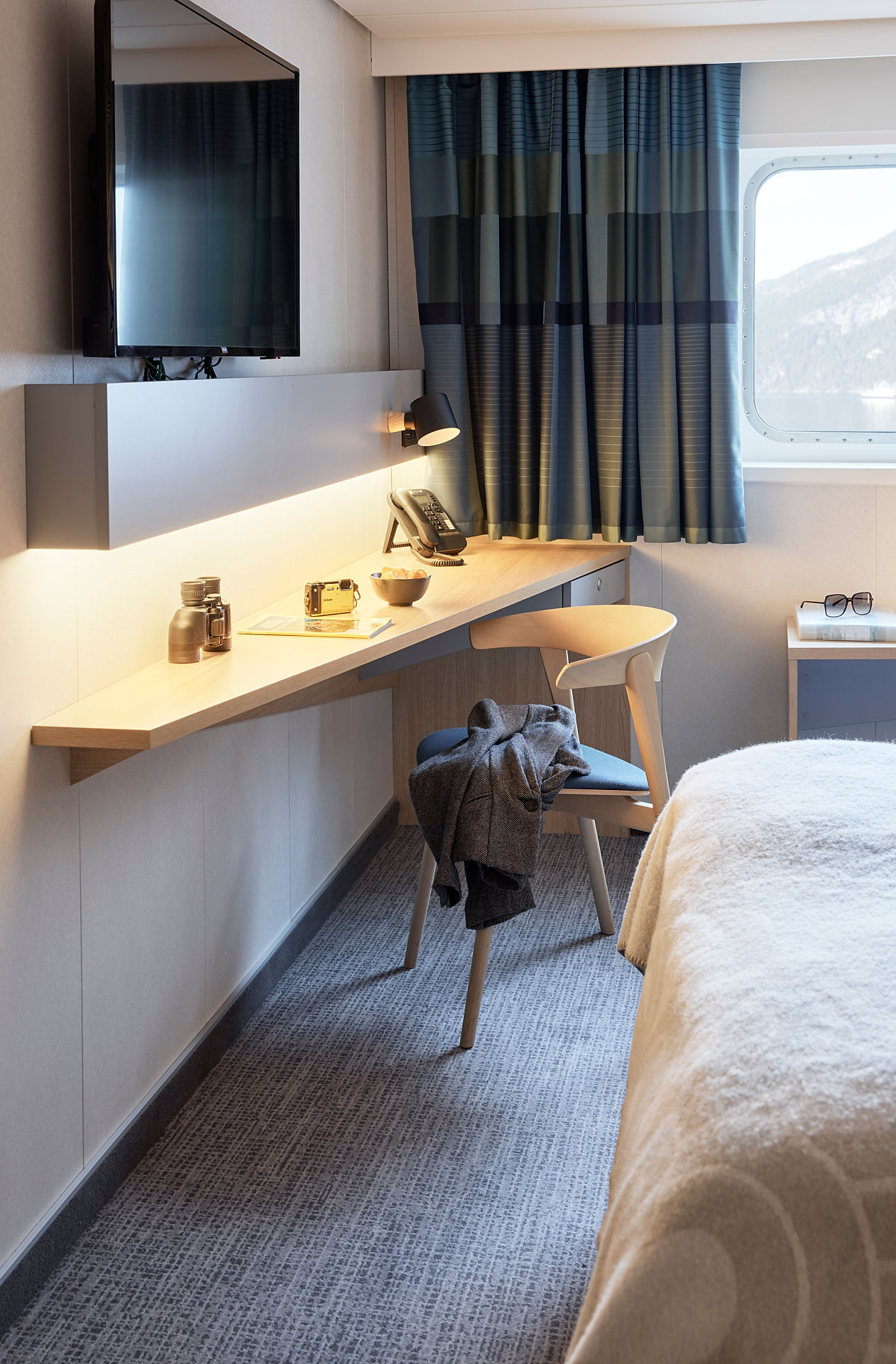 - 6 nights of cruise accommodation Voyage from Bergen to Kirkenes with Havila, in unspecified outside cabin (15m2) with window, fridge, sofa, desk, TV with international channels, hairdryer, tea and coffee making facilities, toilet & shower. (Pre-booked cabin upgrades available on request subject to availability)