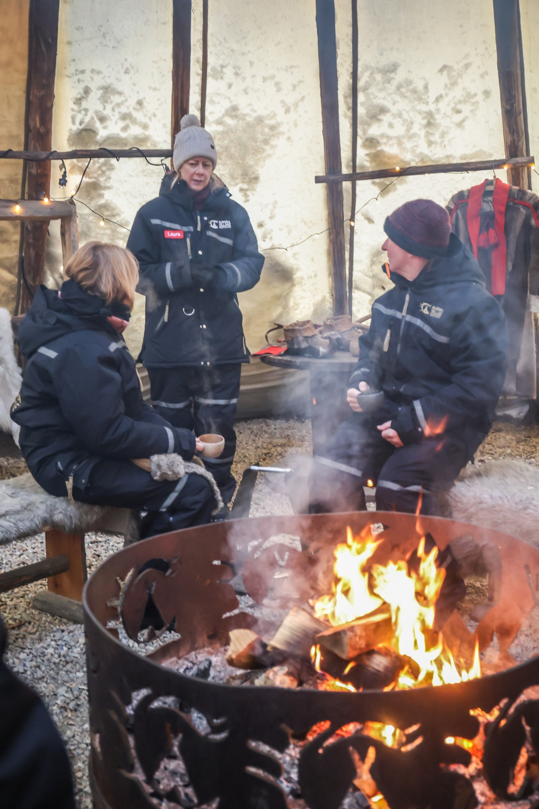 - Outdoor clothing for winter activities/safaris (woolen socks, boots, tube bandana, gloves, thermal overall, balaclava) at the Aurora Cabins