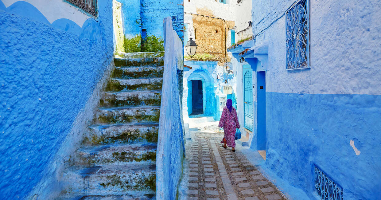 From here, it's around a 45-minute drive to Chefchaouen. The rest of the afternoon is free to stroll through the cobbled lanes and distinctive blue and whitewashed buildings that make the town so striking.