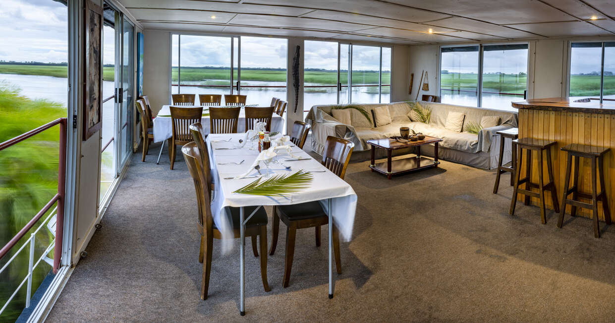 Due to seasonal variations in the level and strength of the river, the houseboat itself might only be able to access limited parts of the river for much of the year. During these times, we'll explore the river on smaller launches.