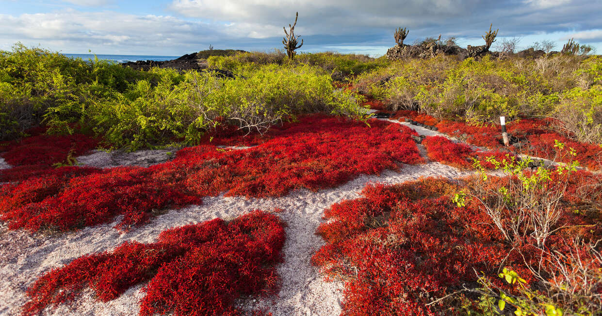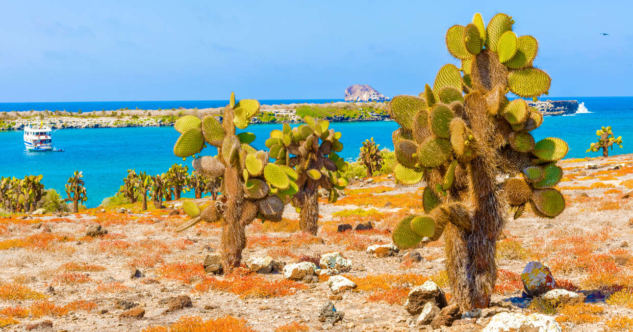 After breakfast this morning we head out to explore Santa Fe Island, giving us a chance to mingle with the iguanas. Located in the southeastern part of the Galapagos, this island is not volcanically formed, and is therefore mostly flat. Scientists theorise that this is the oldest island on the archipelago, and it is home to several endemic species including the Galapagos hawk and Galapagos mockingbird, as well as one of the two land iguana species on the islands. We'll disembark and explore on foot, where giant prickly pear cactus are dotted around.