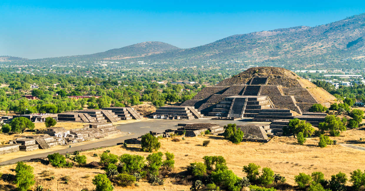 We'll dive right into Mexico City's history today and head to the mysterious pyramids of Teotihuacan. Although it was abandoned in the thirteenth century, the site was once the largest city in the Americas with 100,000 inhabitants. Its influence continued through Middle America, and Mayan craftsmen borrowed its decorative motifs and building designs. Centuries later the Aztecs referred to Teotihuacan as 'the Place of the Gods', hinting at its importance.