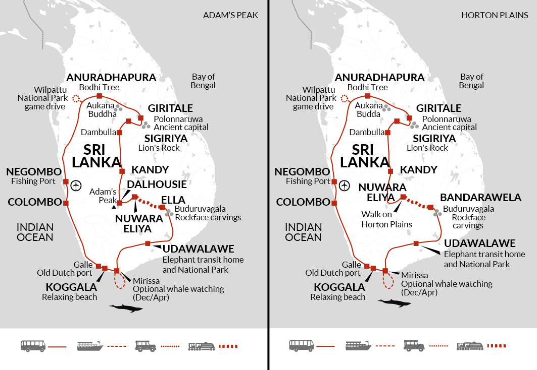 After a free morning, we'll drive three and a half hours to Dalhousie in the foothills of Adam's Peak. Here, we'll have the opportunity to ascend this sacred mountain, known locally as Sri Pada. A depression at the top of the peak is said to be Buddha's footprint and, each year, thousands of locals climb to the top for sunrise.