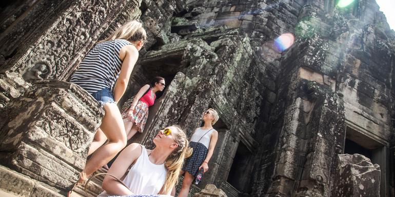 The history and culture of Cambodia is on full display today as you join your CEO to explore some of the most beautiful temples in Siem Reap. This morning, visit the smiling stone faces of Bayon Temple in Angkor Thom, known as the last capital city of the Khmer Empire from the 1400s. Then visit the Ta Prohm Temple, known as the Angelina Jolie Temple from Tomb Raider. After a local lunch, visit Banteay Srei Temple, known to have some of the most incredible stone carving in the world. Dig into a delicious dinner at your G for Good moment at Spoons, an organization that provides at risk youth an opportunity for a self-sustaining future through education, training, and employment opportunities. To end the day on a high note, opt to join your CEO and fellow Solo-ish travellers for an evening city walk to visit the Royal Garden and river front, a popular street lined with pubs frequented by locals.