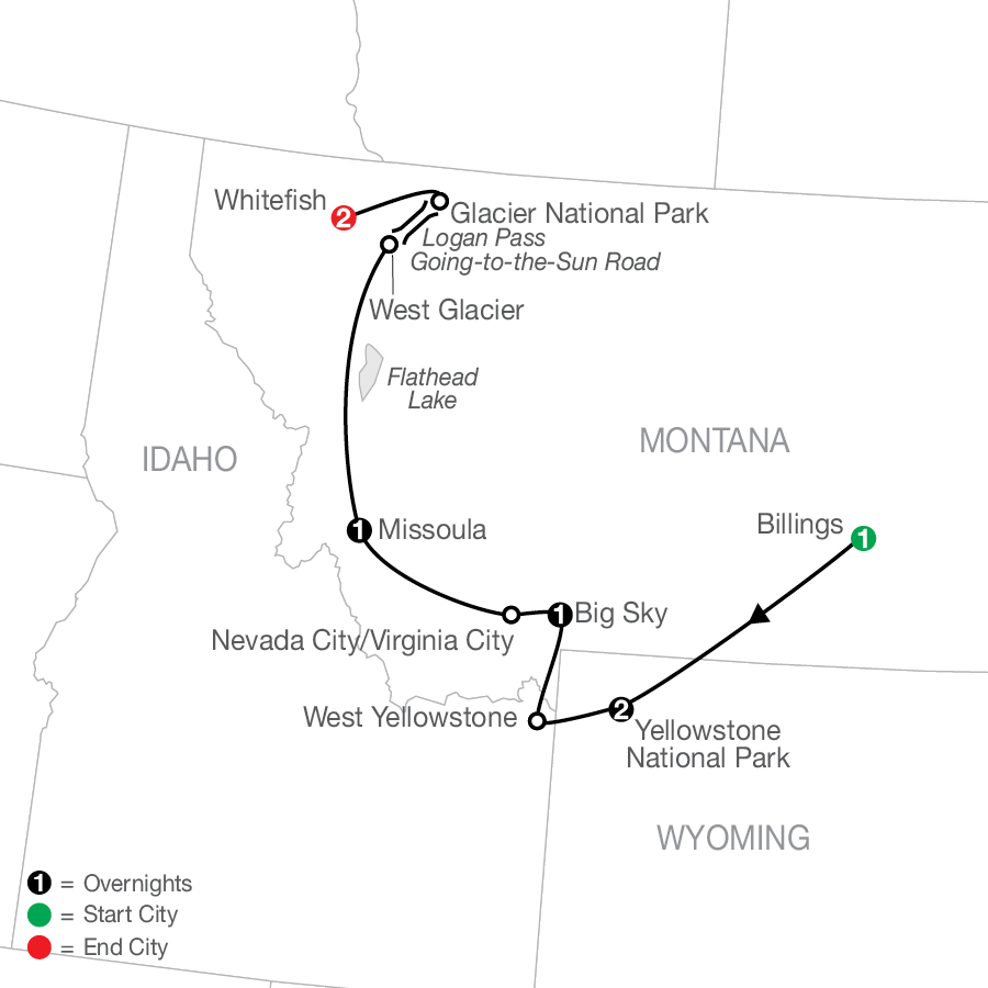 Special features included in this tour:• Orientation tour of Billings• Guided sightseeing in Yellowstone National Park• Globus Choice excursion in Big Sky – included in your tour with your choice of a guided hike at Ousel Falls or ride on Big Sky’s scenic chair lift and walk with a Naturalist• Visit the Old West in Virginia City and Nevada City• Orientation tour of Missoula• Guided sightseeing in Glacier National Park including the Red Jammer Bus on the Going-to-the-Sun Road• Scenic float trip in Glacier National Park