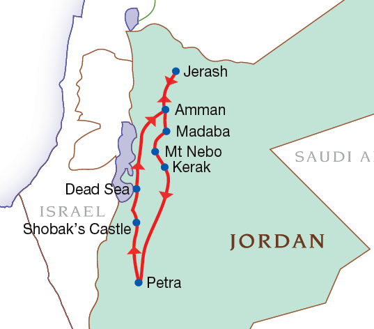 Private 6 day tour of Jordan main attractions. Transportation provided by quality A/C vehicle with English Speaking Driver. See Madaba famous Church, Mt Nebo to see memorial to Moses. Visit Kerak castle- fine example of Crusader architecture as well as Shobek's Castle. Visits to Ancient city of Petra and Jerash with a local guide. Full day allow for Petra.