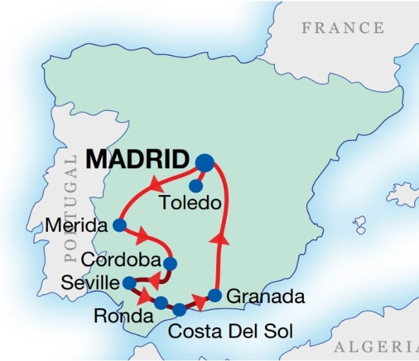 Note: A similar 9-day tour, including Madrid and Toledo, runs on Fridays. Contact us for details.
