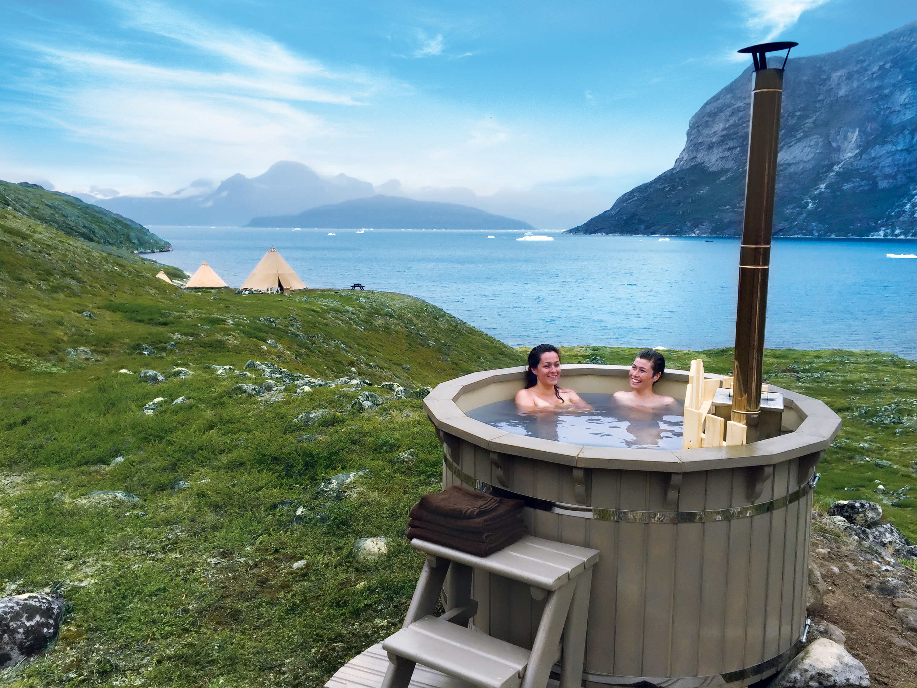 Highlights include remote fishing, boat transfers through the Nuuk fjord, guided hikes, guided local village visit, deep sea fishing and private tented camp including outdoor hot tub and sauna.