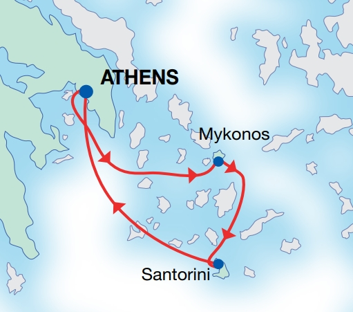 Discover Athens and two of the most popular Greek islands, Mykonos and Santorini!