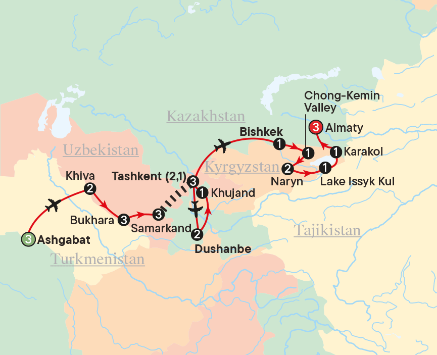 Our tour concludes after breakfast this morning, marking the end of our spectacular Central Asia adventure through the 5-Stans. We hope you leave with fantastic memories!