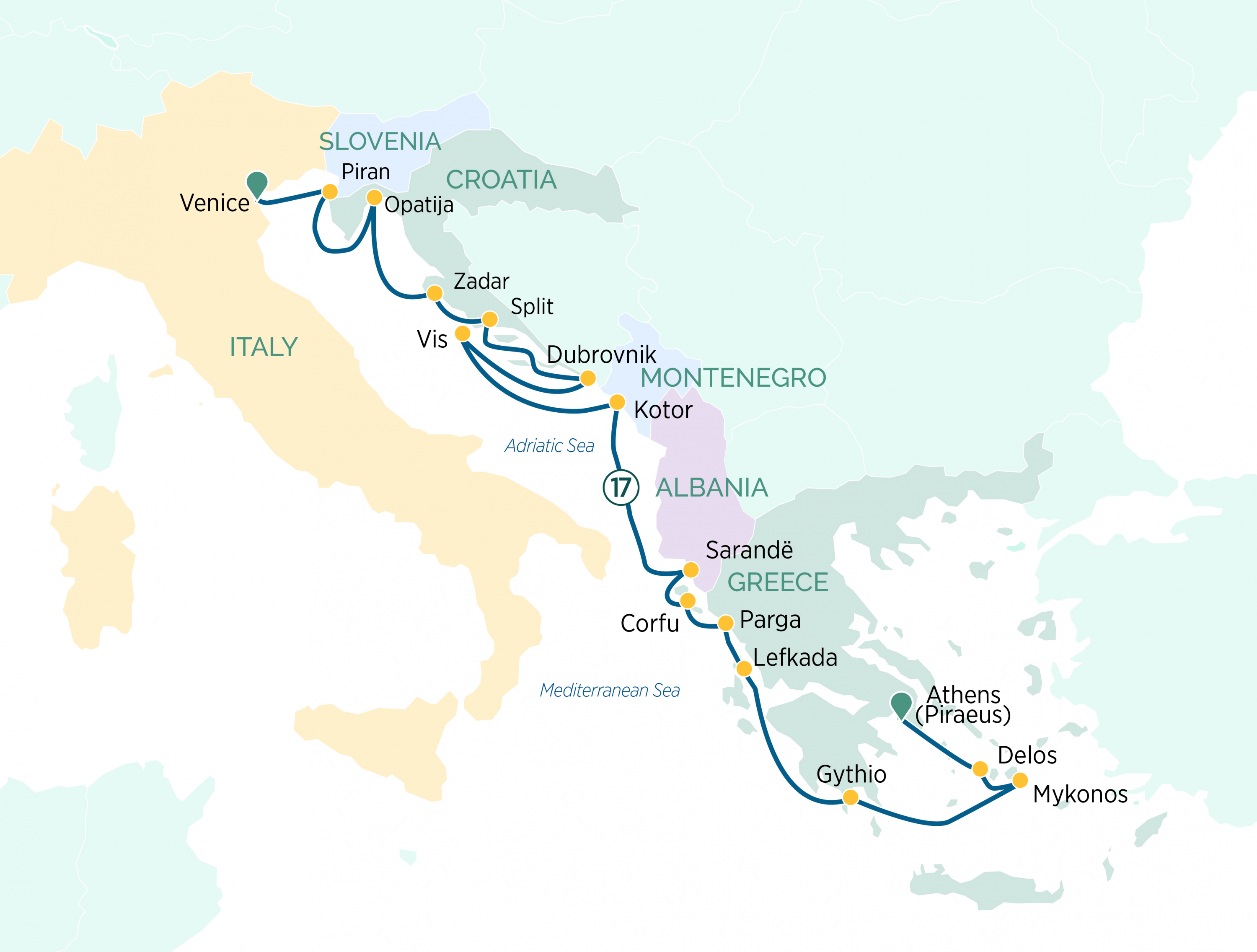 Your cruise begins in the dynamic capital of Greece, Athens, where you will be transferred to your Emerald Cruises luxury yacht to embark on a memorable voyage exploring fascinating towns and extraordinary coastlines.