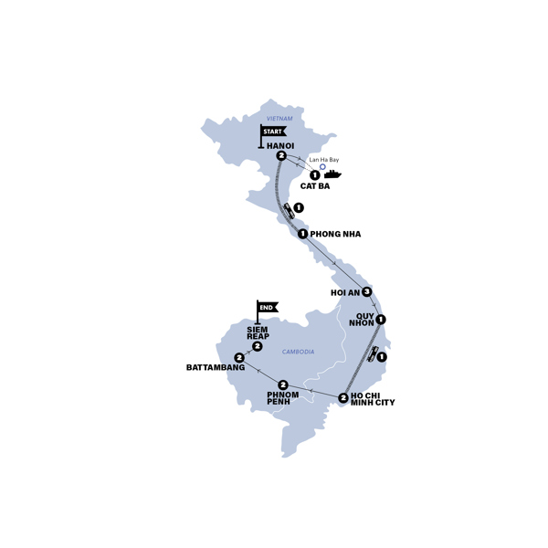 Street eats, sleeper trains, island time and temple sunrises — this 19-day trip through Vietnam and Cambodia is built around the experiences you’ll actually remember. Think food walks in Hanoi, kayaking through Lan Ha Bay, simple rail journeys, lantern-lit nights in Hoi An, local market stops, homestays, hands-on community experiences and time exploring Cambodia’s cities, countryside and ancient temples.