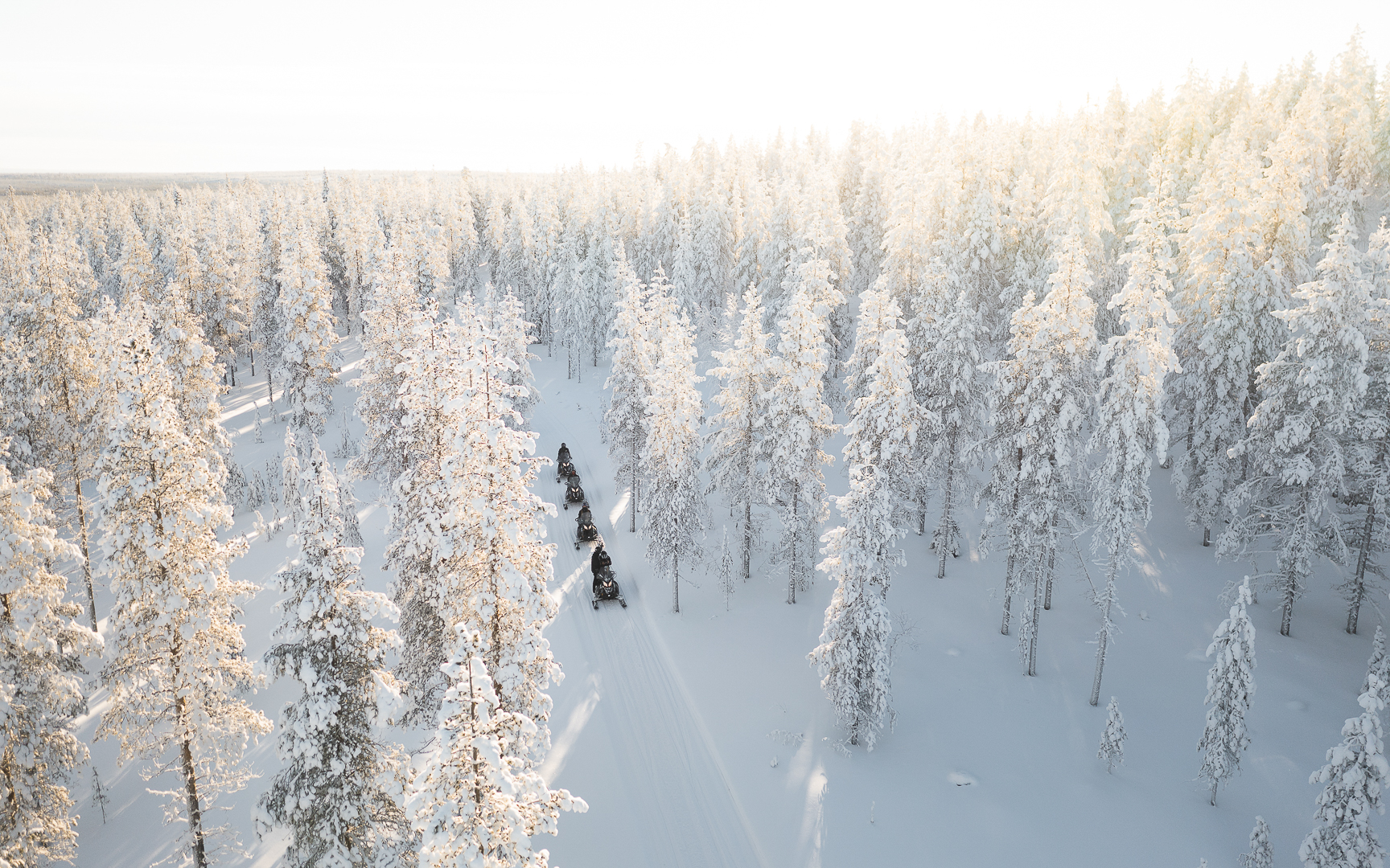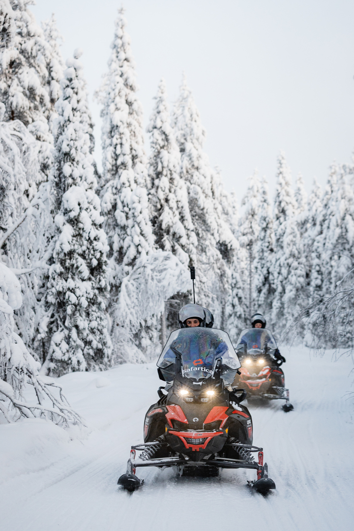 - Experience the thrill of a snowmobile safari through snow-covered forests