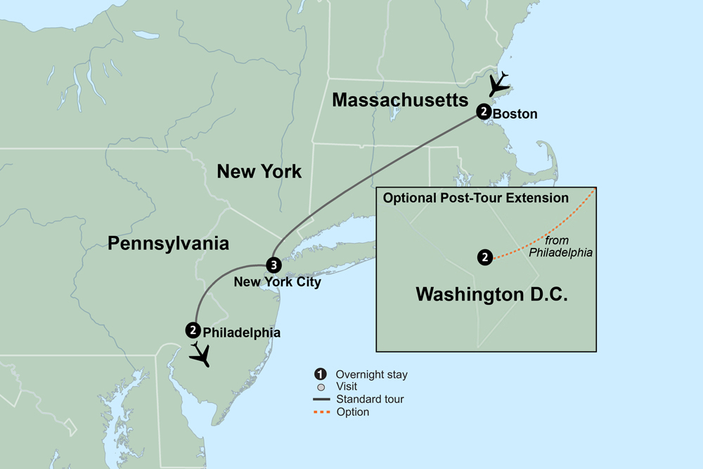 Trace the roots of the United States on a journey through three of America’s most historic cities. Begin in Boston, where the Freedom Trail reveals the sites and stories of the American Revolution. Visit the Mark Twain House and discover how one author helped shape the American voice. Continue to New York City, exploring the Lower East Side, sailing past the Statue of Liberty, and stepping onto Ellis Island to hear powerful stories of immigration and opportunity. In Philadelphia, stand inside Independence Hall, see the Liberty Bell, and explore museums that bring the nation’s founding to life. From revolutionary beginnings to immigrant dreams, experience the people, places, and ideals that define the American story.