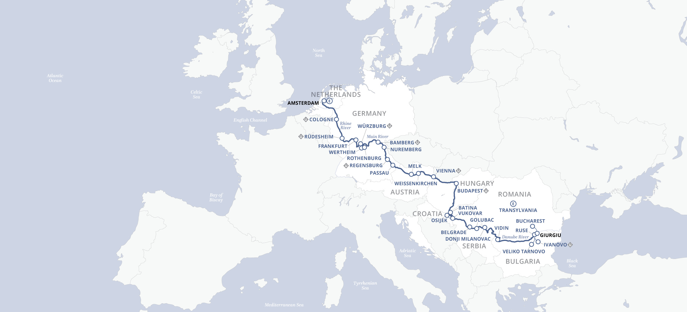 Sail the romantic Rhine, the serene Main and the captivating Danube, witnessing dazzling natural beauty and incomparable architectural feats. Visit no fewer than five capital cities (Amsterdam, Vienna, Budapest, Belgrade and Bucharest) and a dozen towns and villages, with time to explore each. Enjoy numerous UNESCO World Heritage sites, including the castle-dotted Upper Middle Rhine Valley and the magnificent Cologne Cathedral.
