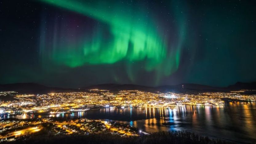 Sail north to an Arctic landscape defined by silence and snow. Clear nights may reveal the elusive northern lights as solar particles collide with Earth’s atmosphere casting vibrant, dancing colors across the sky. Here, age-old Sami traditions thrive in everyday life through reindeer herding and dogsledding. In Tromsø, the Arctic Cathedral’s modern silhouette rises above the fjord, a luminous landmark amid the dark of winter.