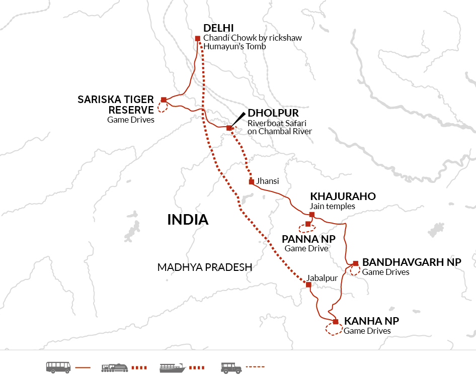 We enjoy one final game drive in Kanha National Park this morning before we leave the boundaries of the park and drive to Jabalpur, a journey of approximately four to five hours including stops. From Jabalpur, we board our overnight train which will take us back to Delhi.