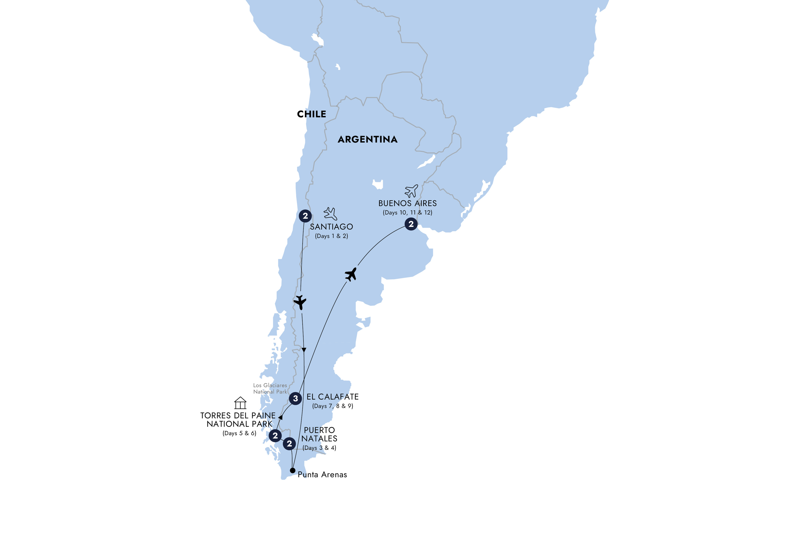 Travel through South America on this Patagonia guided tour, crossing Chile and Argentina to experience one of the world’s most remote and striking regions. Visit Torres del Paine and Los Glaciares national parks, cruise past towering icebergs and walk beneath the peaks of the Andes. Learn about traditional ranch life at an estancia, meet a glacier expert and discover how climate change is shaping the Southern Patagonian Ice Field. Along the way, explore Santiago and Buenos Aires, gaining insight into the political and cultural histories of South America’s southern capitals.
