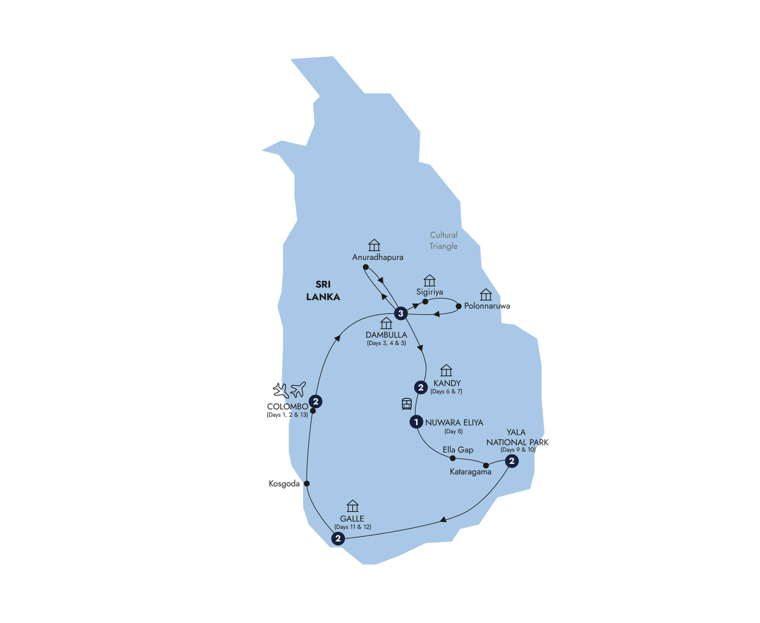 From the golden shores of Colombo to the misty highlands of Nuwara Eliya and the wild landscapes of Yala, experience the many faces of Sri Lanka on this unforgettable journey. Climb the UNESCO-listed Sigiriya Rock Fortress, explore the sacred temples of Kandy and Anuradhapura, and meet a practicing monk for a traditional blessing ceremony. Watch Asian elephants roam freely on safari in Yala National Park, then journey to the colonial streets of Galle Fort, where Dutch-era mansions overlook the Indian Ocean. Along the way, visit a working tea estate, enjoy high tea at the Grand Hotel and witness the skill of Weligama’s stilt fishermen. With amazing landscapes, rich traditions and warm hospitality at every turn, discover the Pearl of the Indian Ocean on a trip to Sri Lanka.