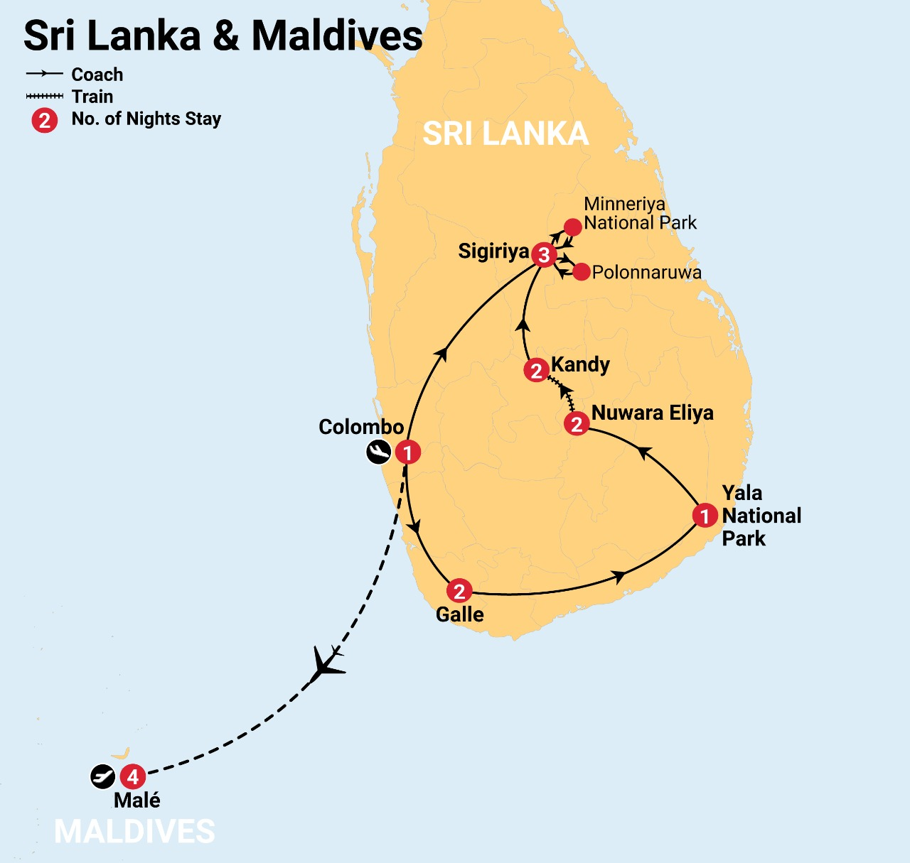 Departing from Sigiriya, you will arrive at Bandaranaike International Airport (CMB) in time for your included flight to Malé, The Maldives.