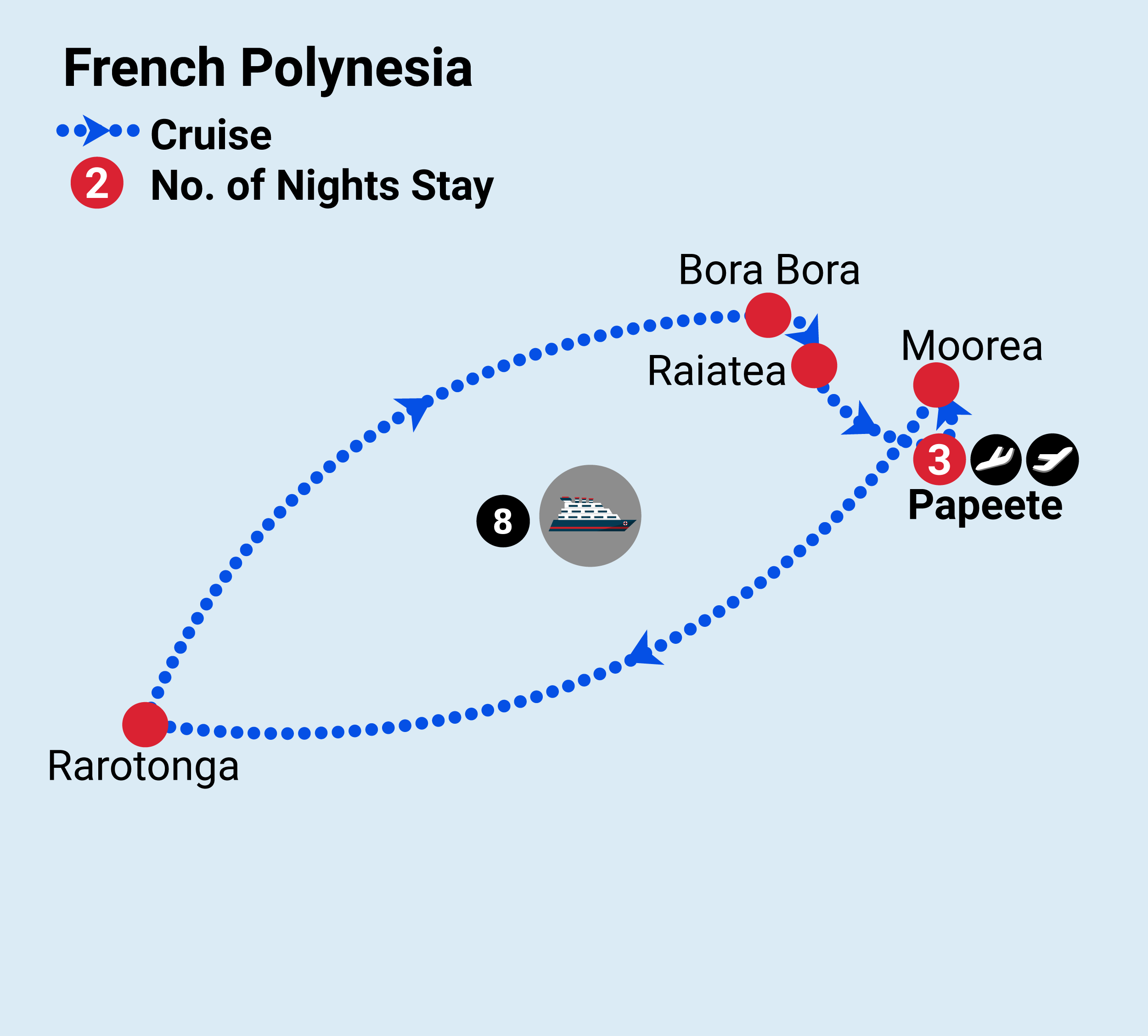 Experience the beauty of French Polynesia from Tahiti to Bora Bora. Explore pristine beaches, turquoise lagoons, and local culture, enjoy 8 nights onboard Norwegian Spirit, and relax during 2-night pre-cruise and 1-night post-cruise stays in Papeete with breakfast included. Gratuities are included in the cruise fare.