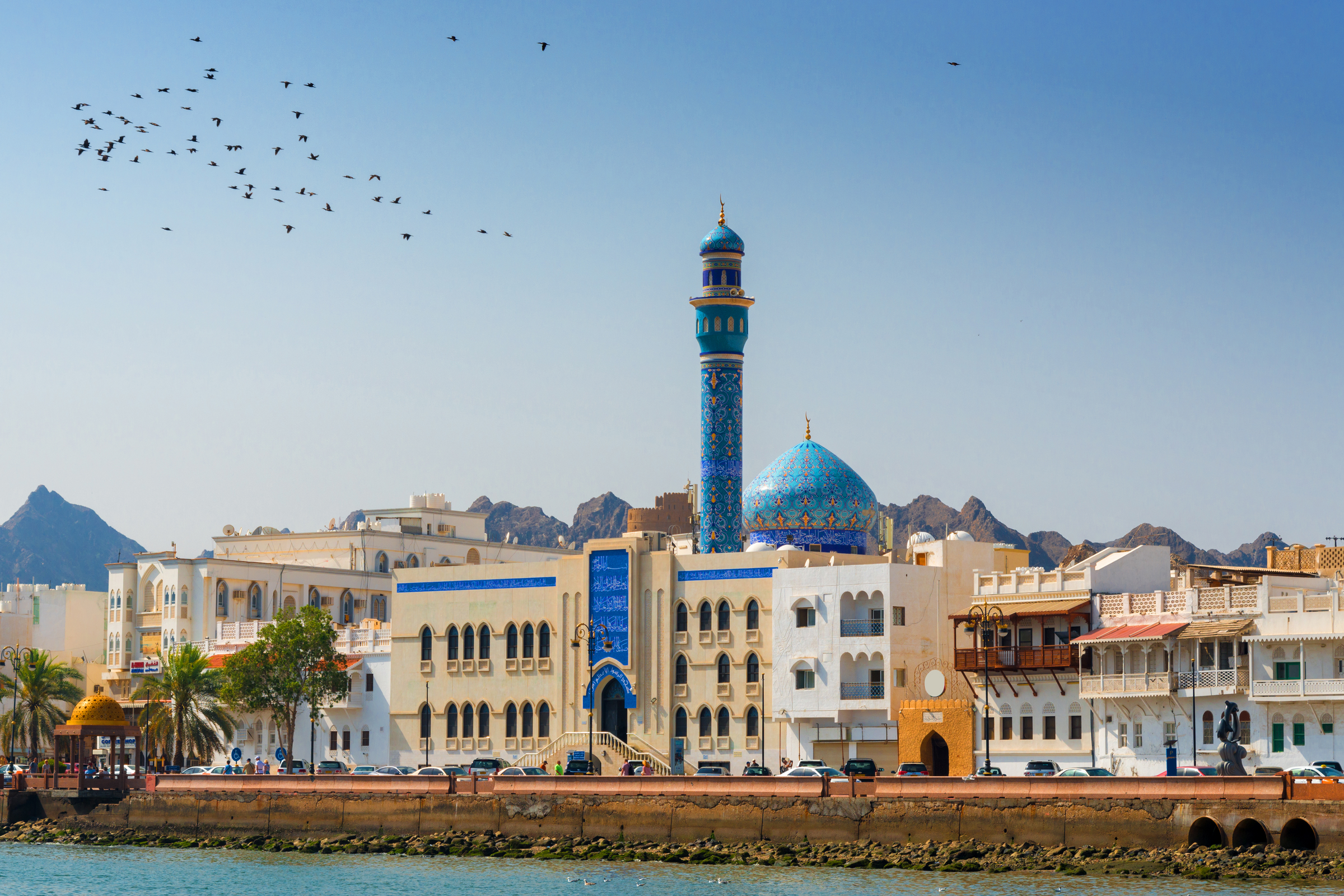 Reach the elegant capital of Oman. Visit the stunning Sultan Qaboos Grand Mosque, browse the colorful Mutrah Souq, or take a sunset dhow cruise along the coast. Nature lovers may opt for a dolphin-watching trip or an excursion to the turquoise waters of the Bimmah Sinkhole.